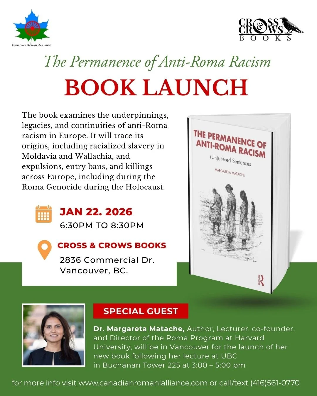 The Holocaust Education Committee of the University of British Columbia is pleased to invite you to a talk by Dr. Margareta Matache, Lecturer, co-founder, and Director of the Roma Program at Harvard University.