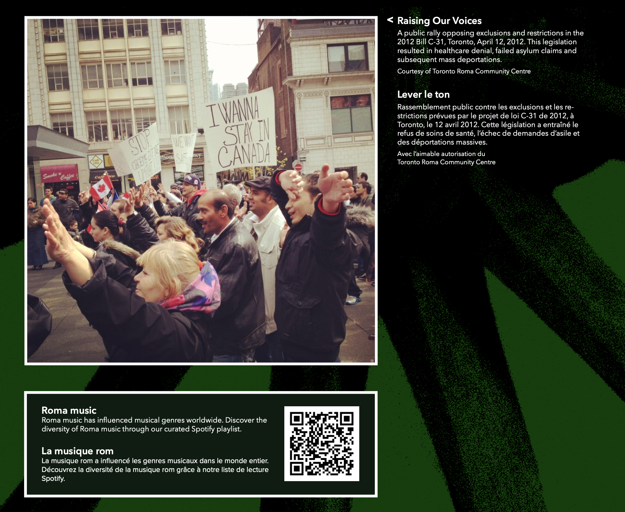 A public rally opposing legislative exclusions and restrictions impacting the Roma community, Toronto, April 12, 2012.